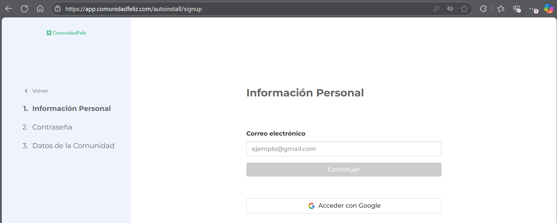 Crea tu Acceso: Si no tienes un usuario en ComunidadFeliz, regístrate y crea una contraseña. Es necesario que valides tu correo electrónico a través de un smartlink enviado para poder ingresar al sistema.